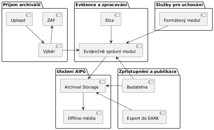 Modul zajišťující proces výběru archiválií a tvorbu SIP balíčků vstupujích do části zajišťující jejich uložení.